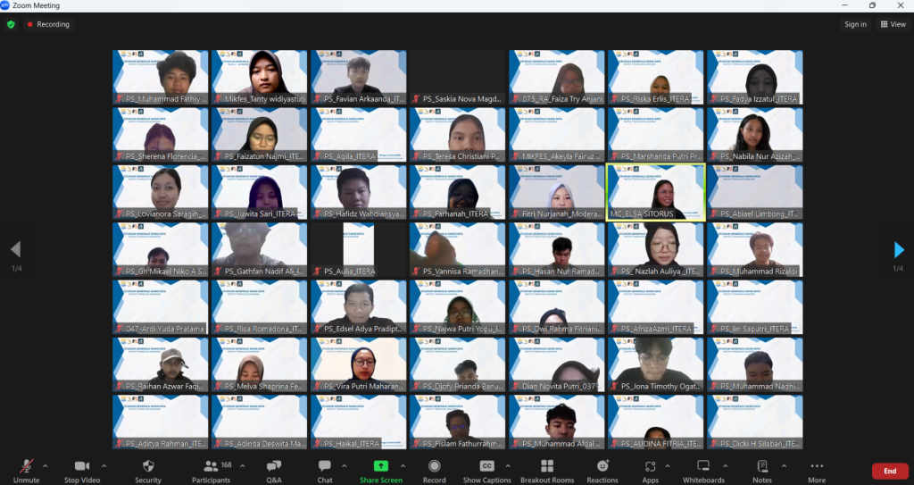 Kegiatan ini dibuka secara simbolis oleh Kaprodi, dilanjutkan dengan pemaparan materi oleh narasumber, serta dimoderatori oleh Ibu Ira Safitri, M.Si., MSc., selaku dosen Sains Data.