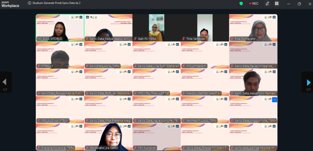 Kegiatan ini dilaksanakan pada Minggu, 8 Maret 2026 secara daring melalui Zoom Meeting dengan menghadirkan narasumber Rivalni Septiadi, S.Kel., yang merupakan Educator di Department for Education South Australia sekaligus Sports Instructor dan Swim Coach. Pada pembukaan kegiatan Studium Generale ini, disampaikan kata sambutan dari Kepala Program Studi Sains Data ITERA, Bapak Tirta Setiawan, S.Pd., M.Si. Beliau menyampaikan bahwa kegiatan Studium Generale merupakan salah satu program akademik yang bertujuan untuk memberikan wawasan tambahan bagi mahasiswa di luar materi yang diperoleh selama perkuliahan. Selain itu, kegiatan ini juga diharapkan dapat menambah pengetahuan serta memberikan gambaran kepada mahasiswa mengenai peluang karir di tingkat internasional. Dalam sambutannya, beliau juga menyampaikan melalui kegiatan Studium Generale yang mengusung tema “Working Abroad: Opportunities, Challenges, and Strategic Preparation”, diharapkan para peserta dapat memperoleh wawasan mengenai peluang bekerja di luar negeri, tantangan yang mungkin dihadapi, serta strategi yang perlu dipersiapkan untuk dapat bersaing di tingkat global. Selanjutnya, kegiatan secara simbolis dibuka oleh beliau dan dilanjutkan dengan pemaparan materi yang dimoderatori oleh Ibu Fitri Nurjanah, S.Si., M.Mat., yang juga merupakan dosen Program Studi Sains Data ITERA.